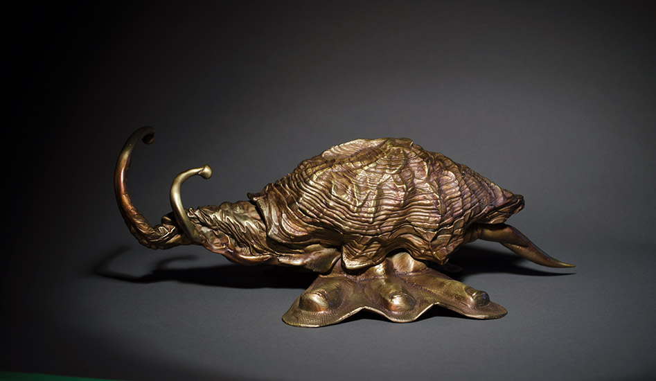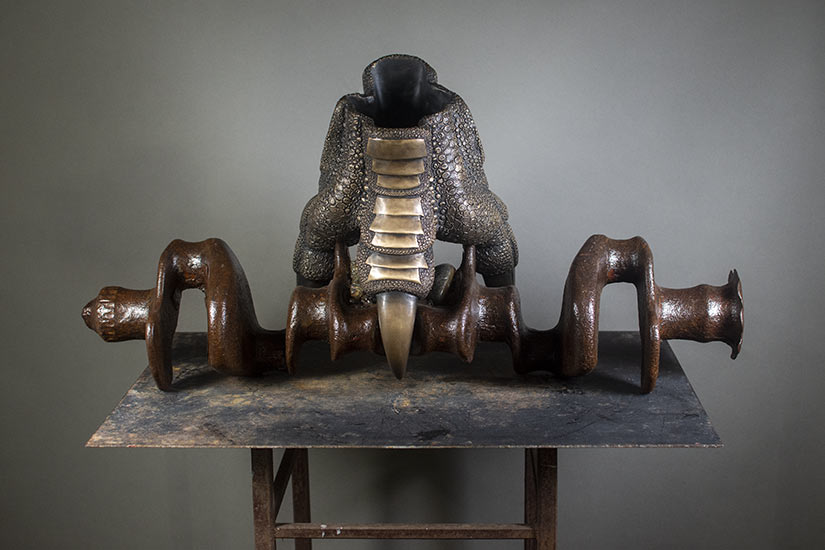 Dinosaur, 2022, 28" x 10.5" x 14.5", bronze and steel, unique